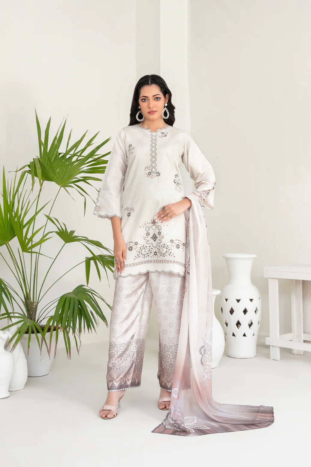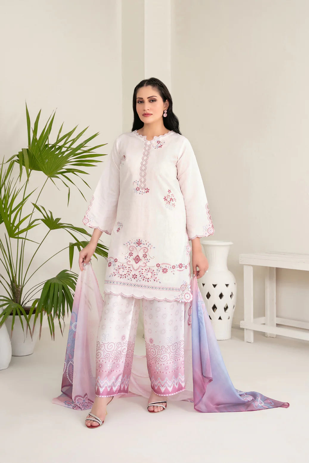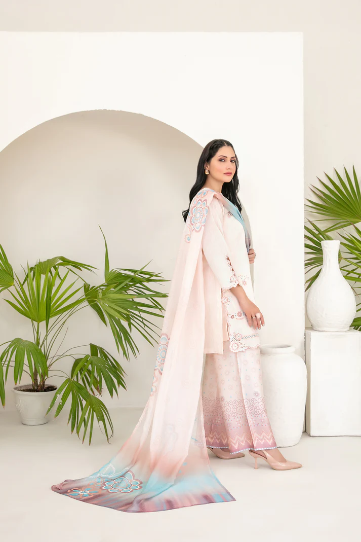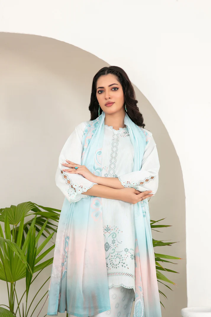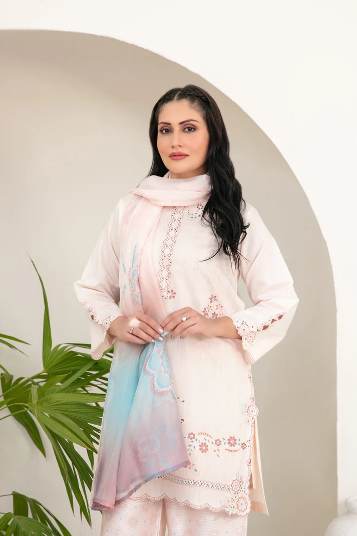 This luxurious 3-piece unstitched outfit beautifully merges cultural craftsmanship with modern femininity. Made from premium cotton khadi fabric, Kamari offers a soft, breathable, and durable texture — perfect for UAE’s warm weather while keeping you effortlessly elegant.